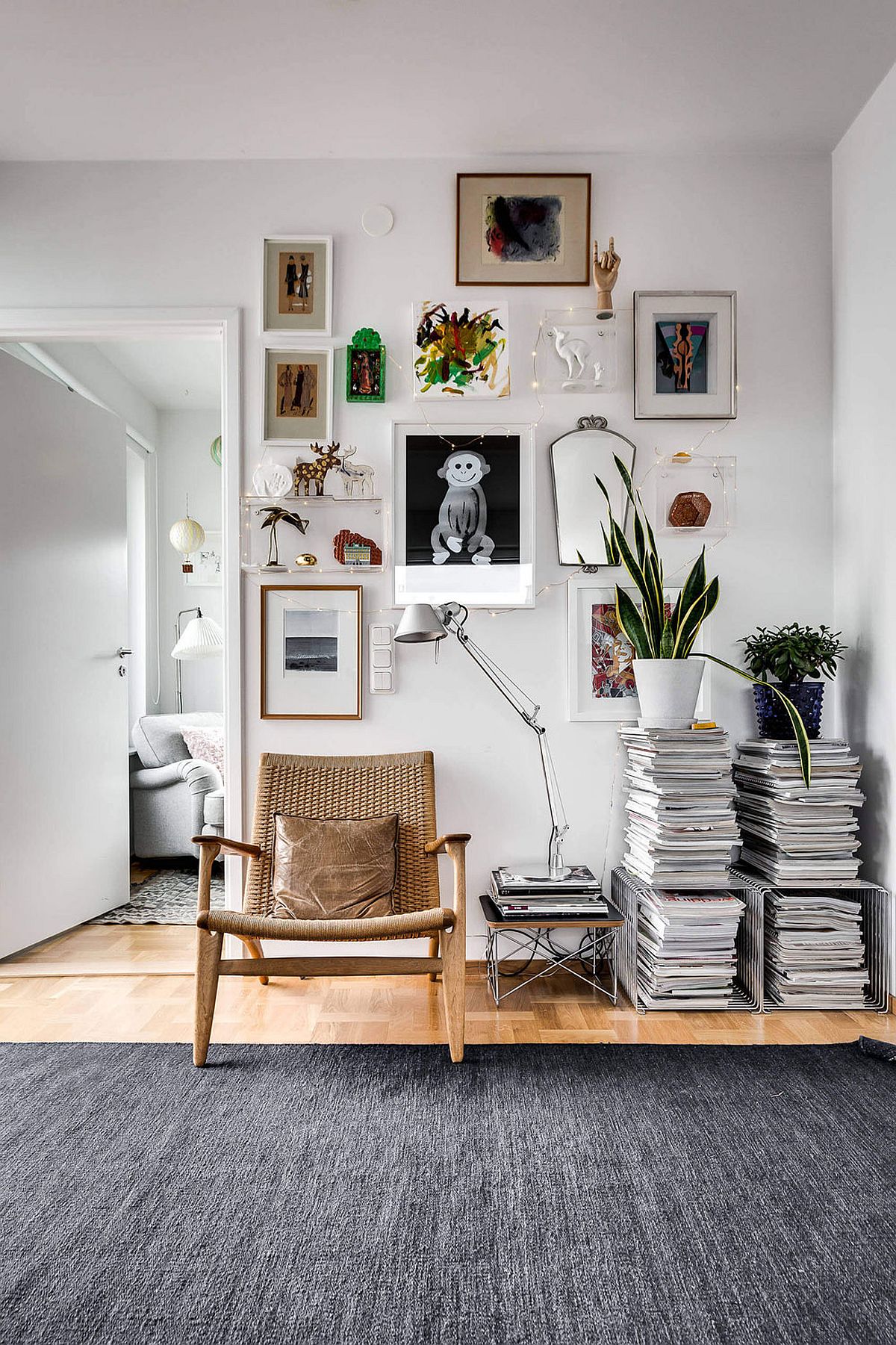 在亞歷山大·懷特的這所小公寓中,滿滿的自然光線營(yíng)造出非常愉悅、舒適的氛圍,淺灰以及純白的涂料,運(yùn)用到極致的斯堪的納維亞風(fēng)格裝飾品、室內(nèi)綠植、胡桃木象棋凳子等等,將居室裝飾得簡(jiǎn)約高雅,讓你第一眼就沉浸其中而無法自拔。