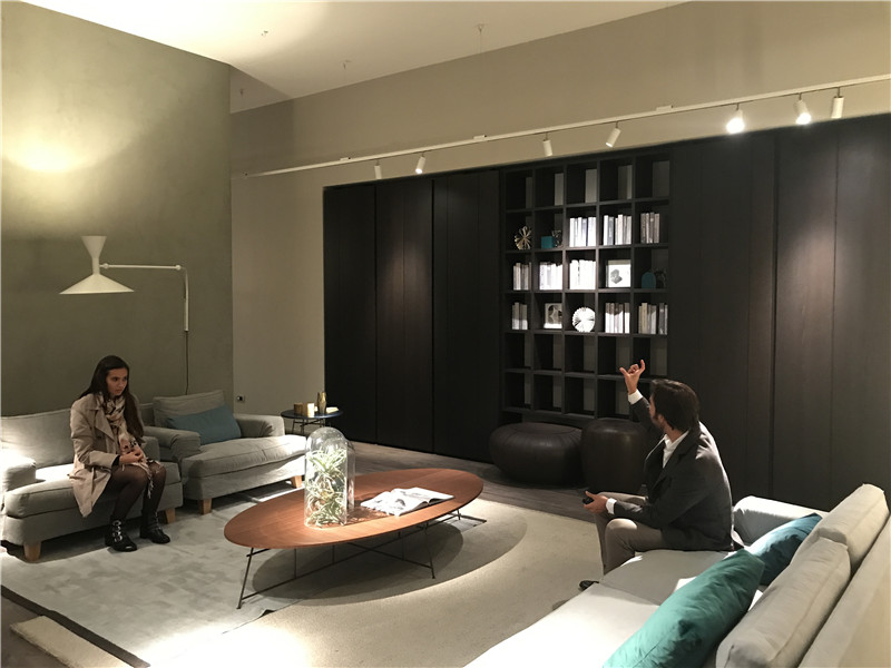 LEMA負(fù)責(zé)人正在為意俱意大利方的同事講解柜門的巧妙設(shè)計(jì)。