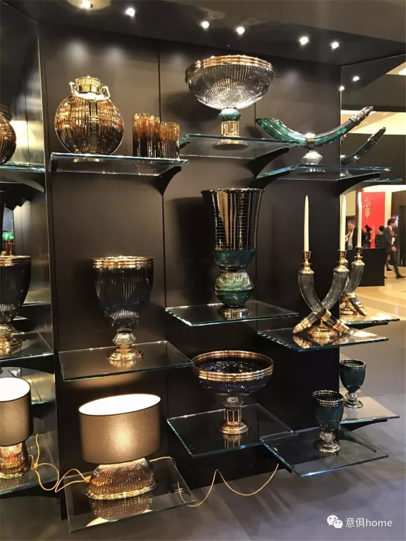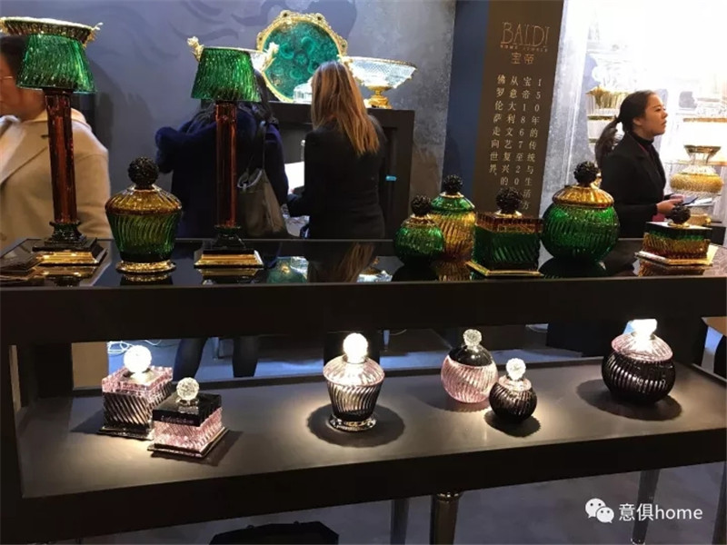 以藝術之名,品生活之道。BALDI帶著對珍惜水晶無與倫比的熱情,將獨一無二的定制品帶到了展會現(xiàn)場,暖黃的燈光更加襯托出BALDI金碧輝煌的感覺。