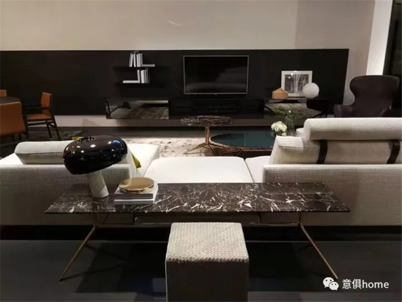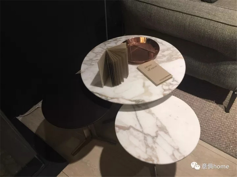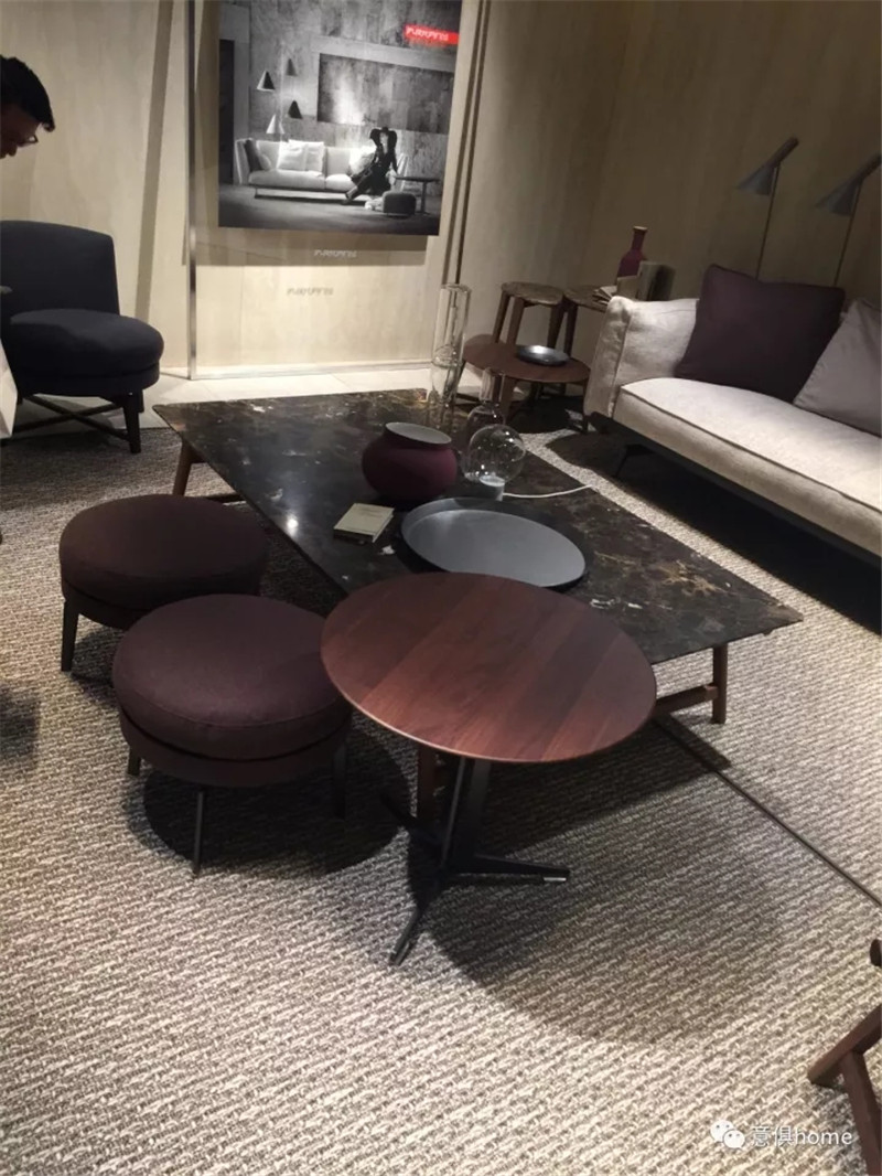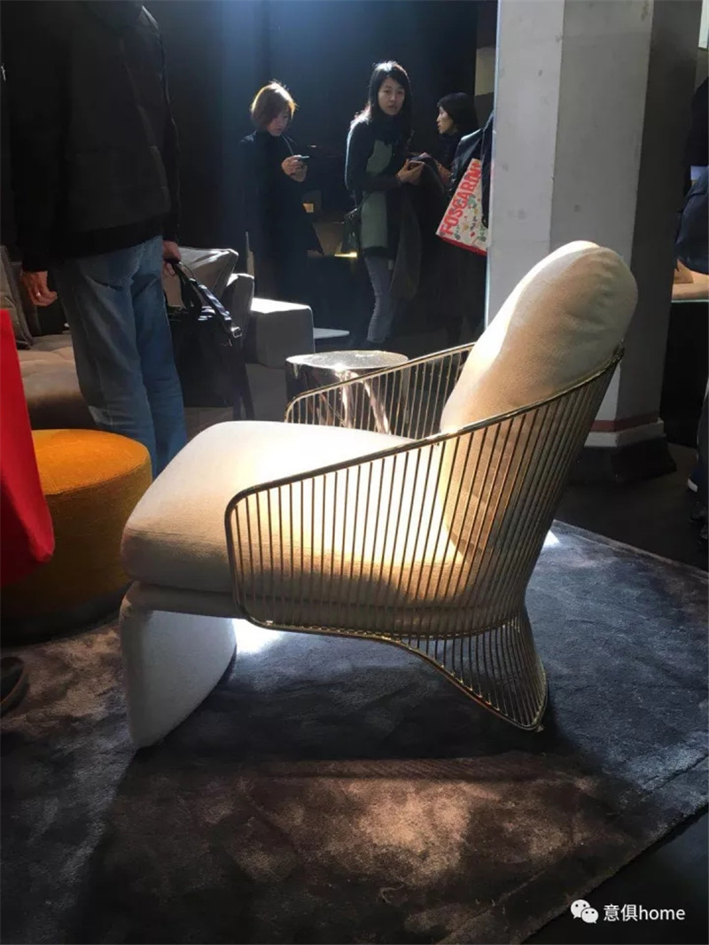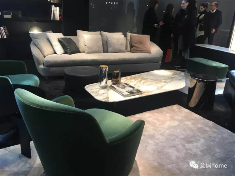 在此次的家具展中,MINOTTI帶來了他們的新品家居,包括LOU桌子,F(xiàn)IL NOIR椅子,