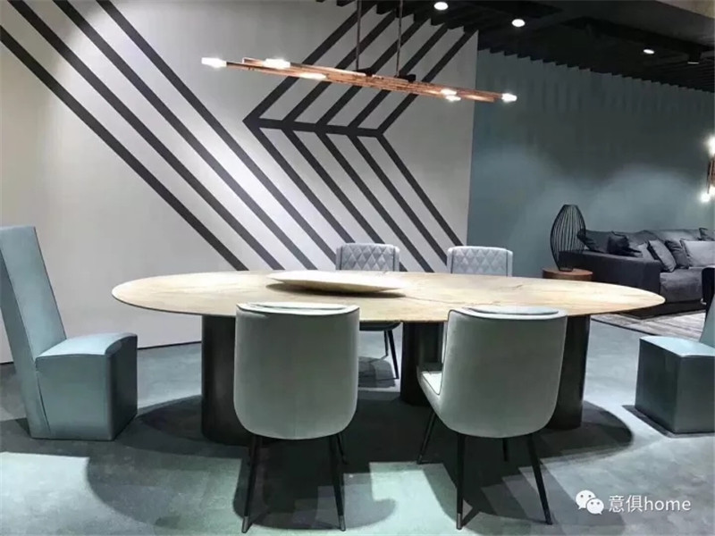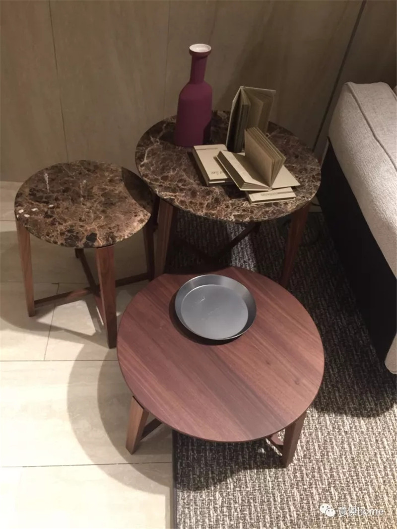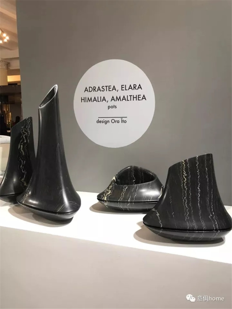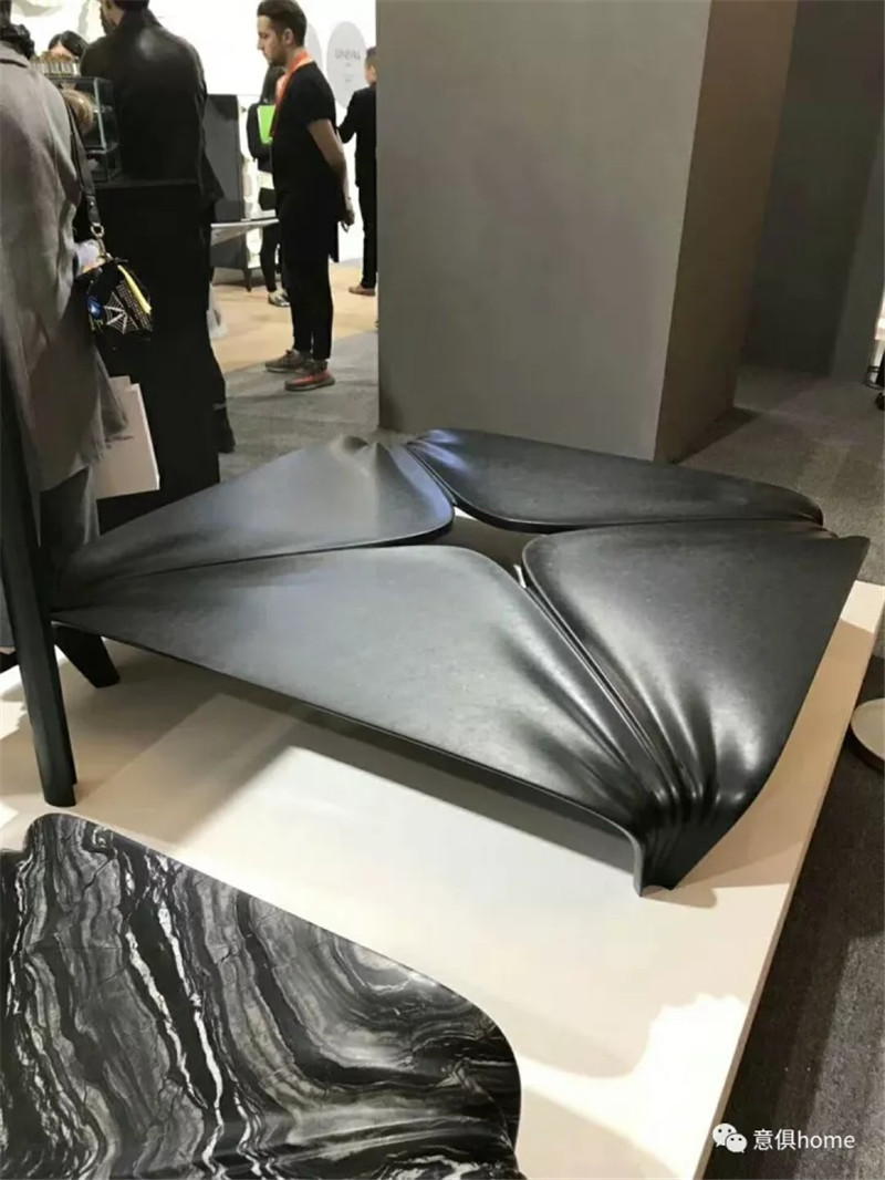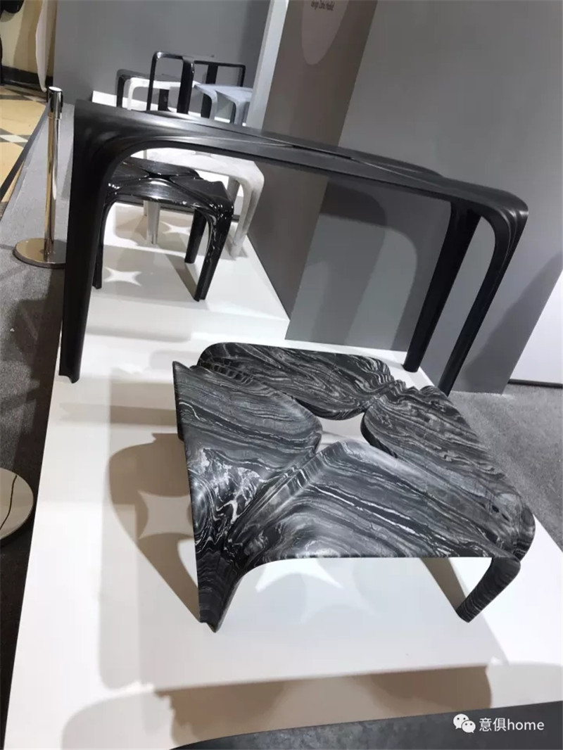 在此次的家具展中,MINOTTI帶來了他們的新品家居,包括LOU桌子,F(xiàn)IL NOIR椅子,