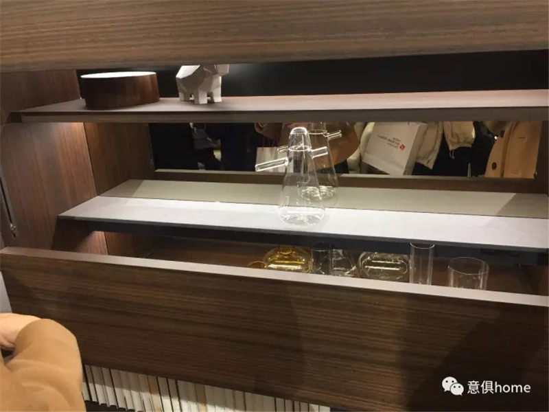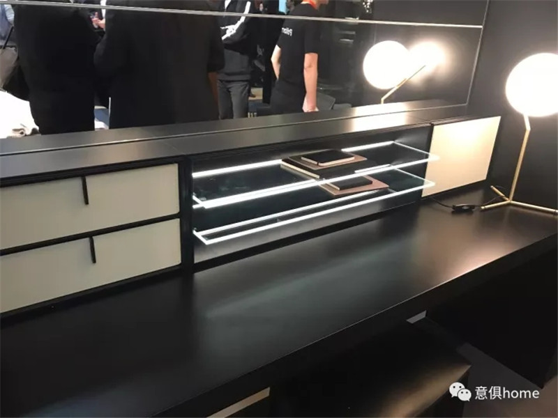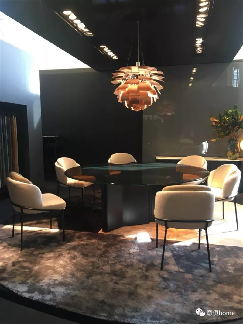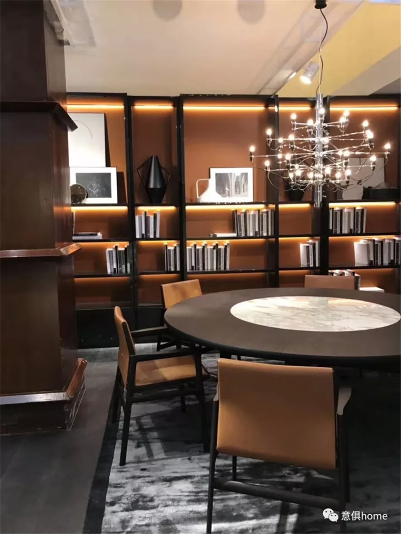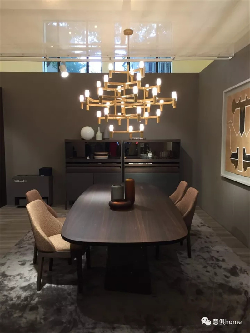 MOLTENI&C將展區(qū)分為餐廳區(qū)、客廳區(qū)、開放式廚房、臥室及衣帽間,此次的產品,皆考慮到了人們的生活方式和細節(jié),暖黃的燈光下,MOLTENI&C展區(qū)倍感溫馨!