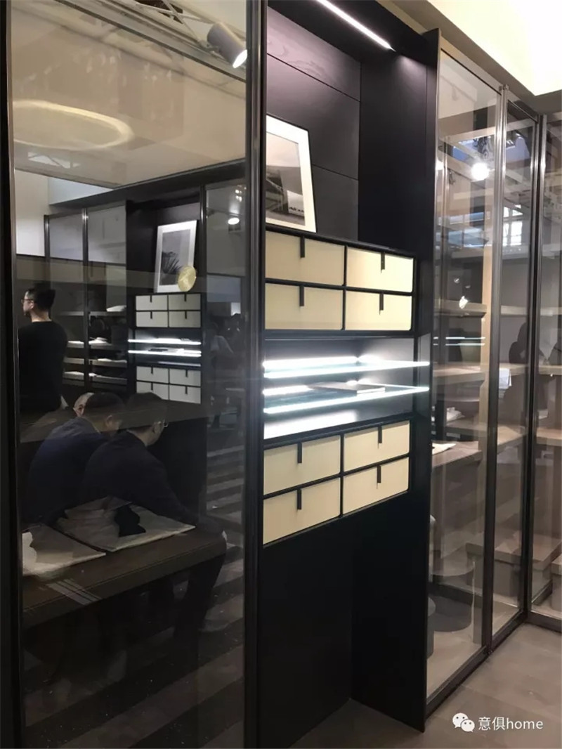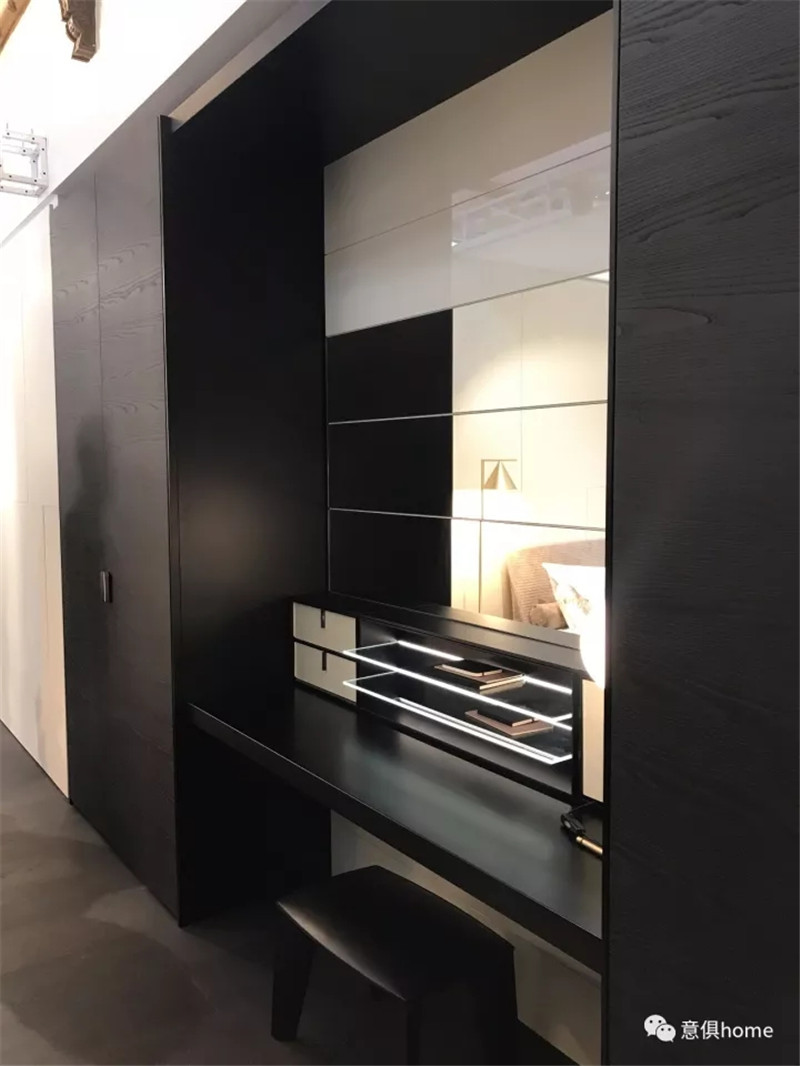 Poliform此次以整體家居的形式展現(xiàn)在大家面前,將展區(qū)分割成客廳區(qū)、餐廳區(qū)、臥室區(qū)以及更衣室,全面展示。