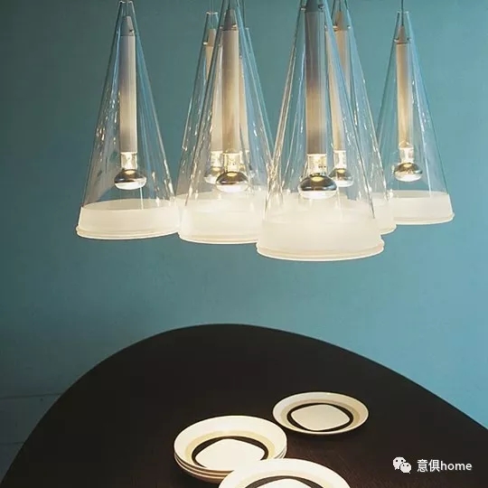 FUCISIA玻璃吊燈,是由Achille Castiglioni設計的,它可以當做單個吊燈使用,也可以多個,構成一個完美的空間設計。