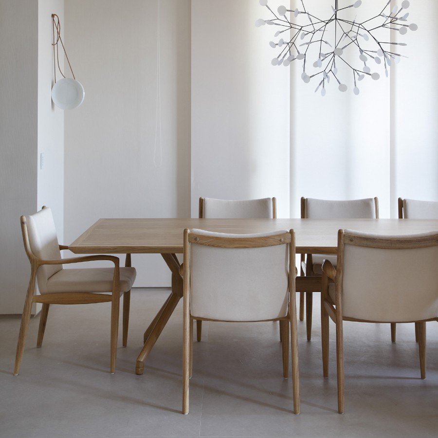 內(nèi)部裝修及家具大多使用了原木色和純色,簡約的風(fēng)格使房子更添一份寧靜,室內(nèi)外形成柔和的視覺呼應(yīng)。
