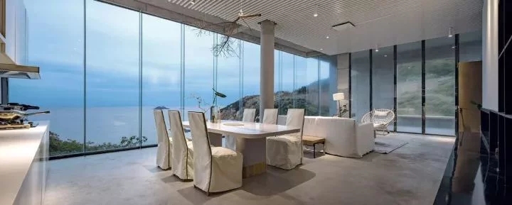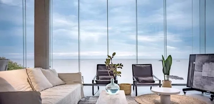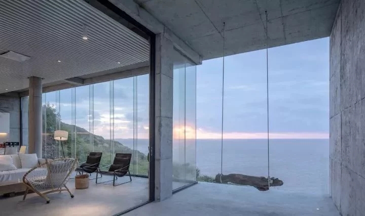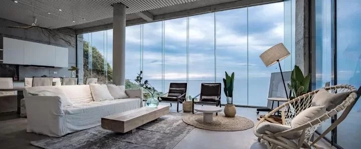 用玻璃墻,構(gòu)造了一個270°的海景房,內(nèi)部的家具選擇,設(shè)計師也偏向與類似戶外的沙發(fā)座椅,旨在與一望無際的海景相結(jié)合。
