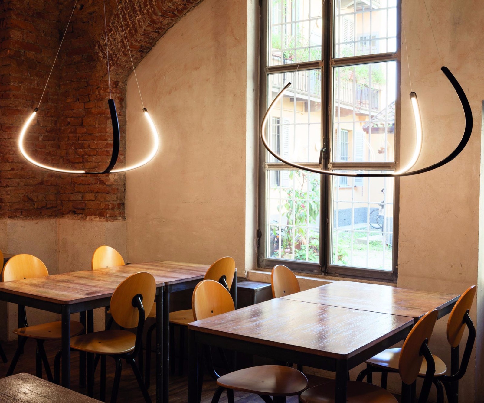 對(duì)于特殊材質(zhì)的靈活運(yùn)用,NEMO的設(shè)計(jì)師將燈具制成各種形狀,這像呼啦圈的燈具增大了照明范圍的同時(shí),也美化了空間,可謂是一舉兩得。