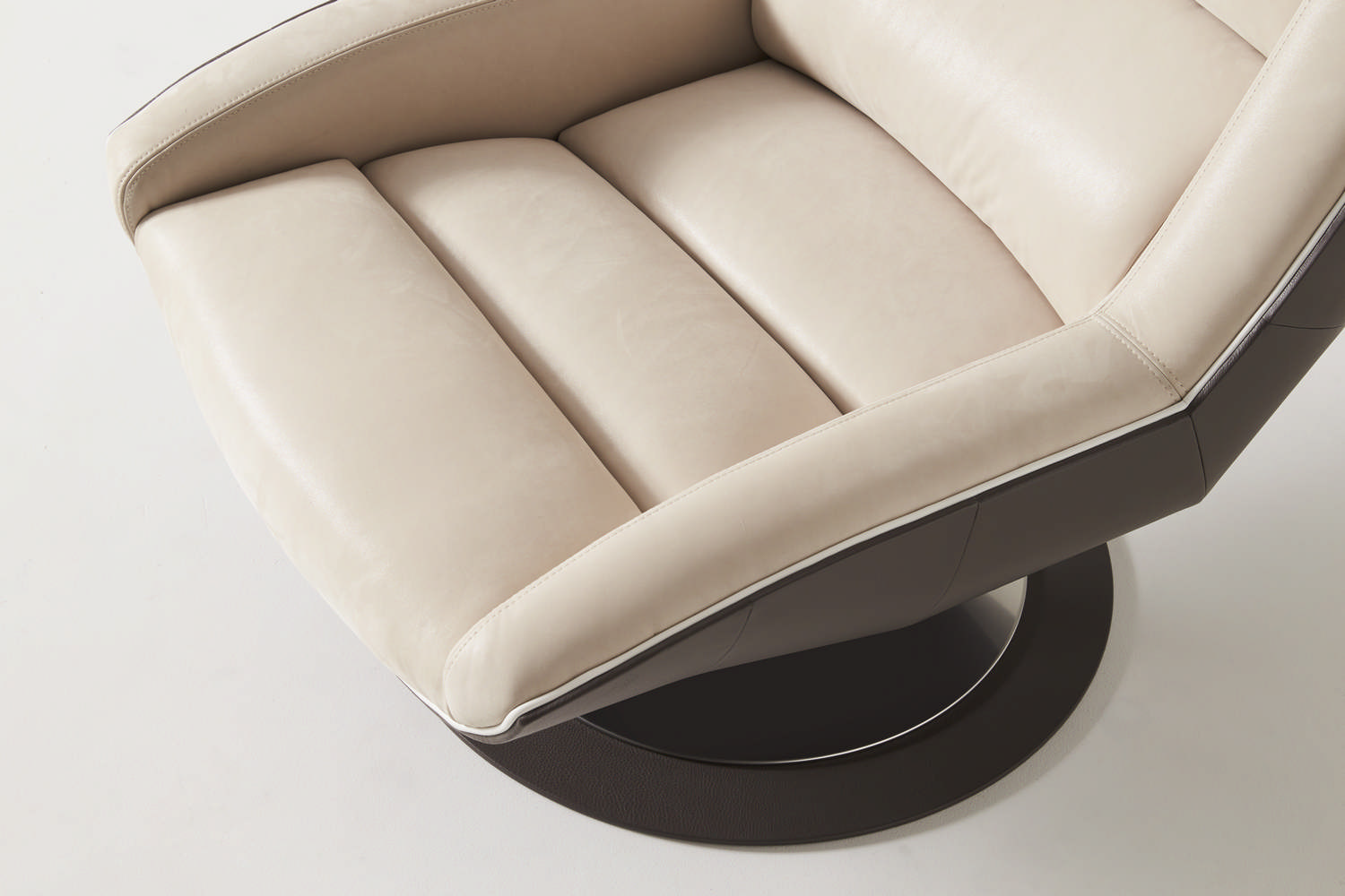 COVRE的制作工藝十分的精致,單從這張休閑椅上來看,布料與皮革相互交替的十分平整光滑,看不出任何褶皺的痕跡。