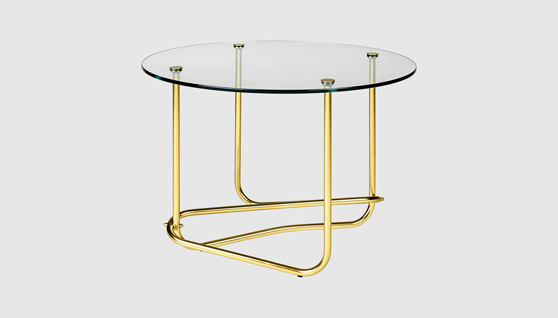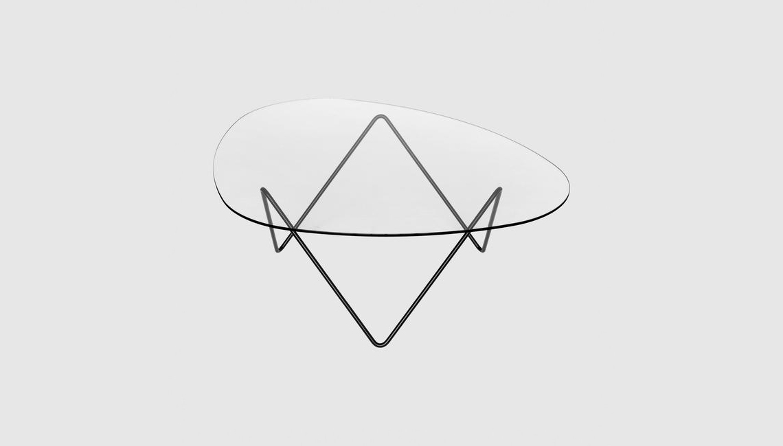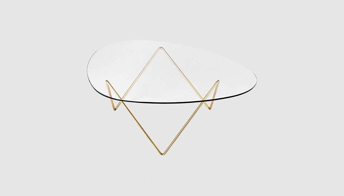 來自丹麥的品牌GUBI,同樣是玻璃茶幾,不同的是它將茶幾的腳做成了細金屬狀,不規則的極細曲線加上通透的玻璃臺面,給空間增加了不少設計的味道,簡單也通透。