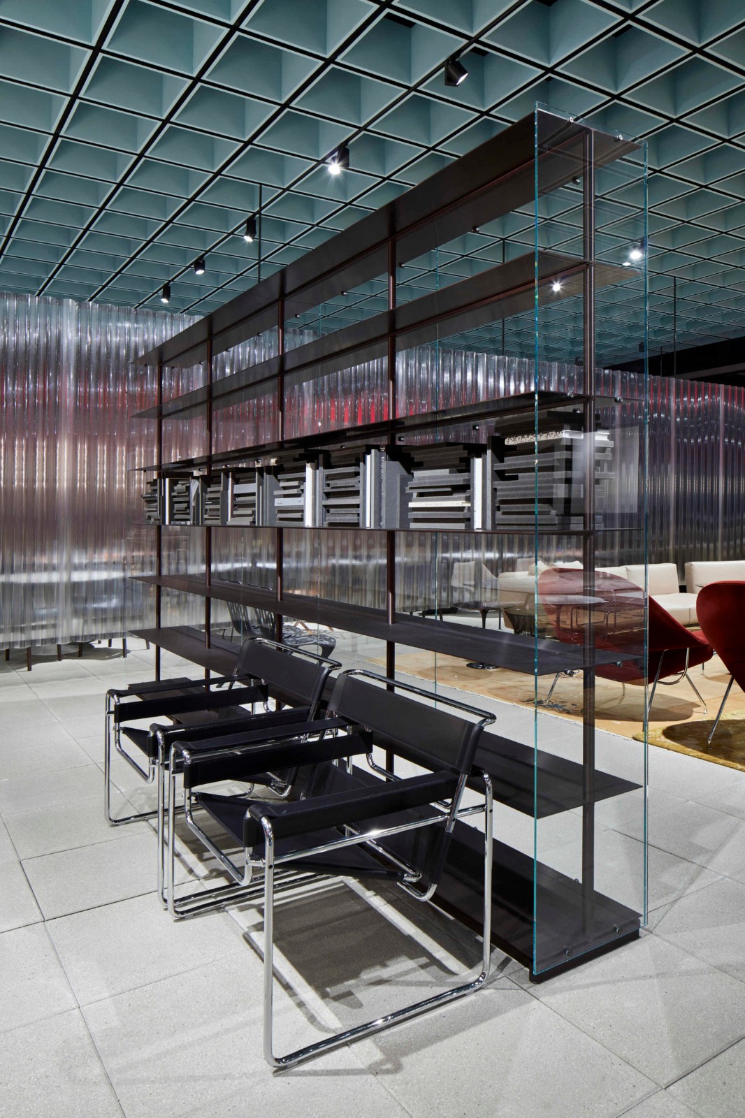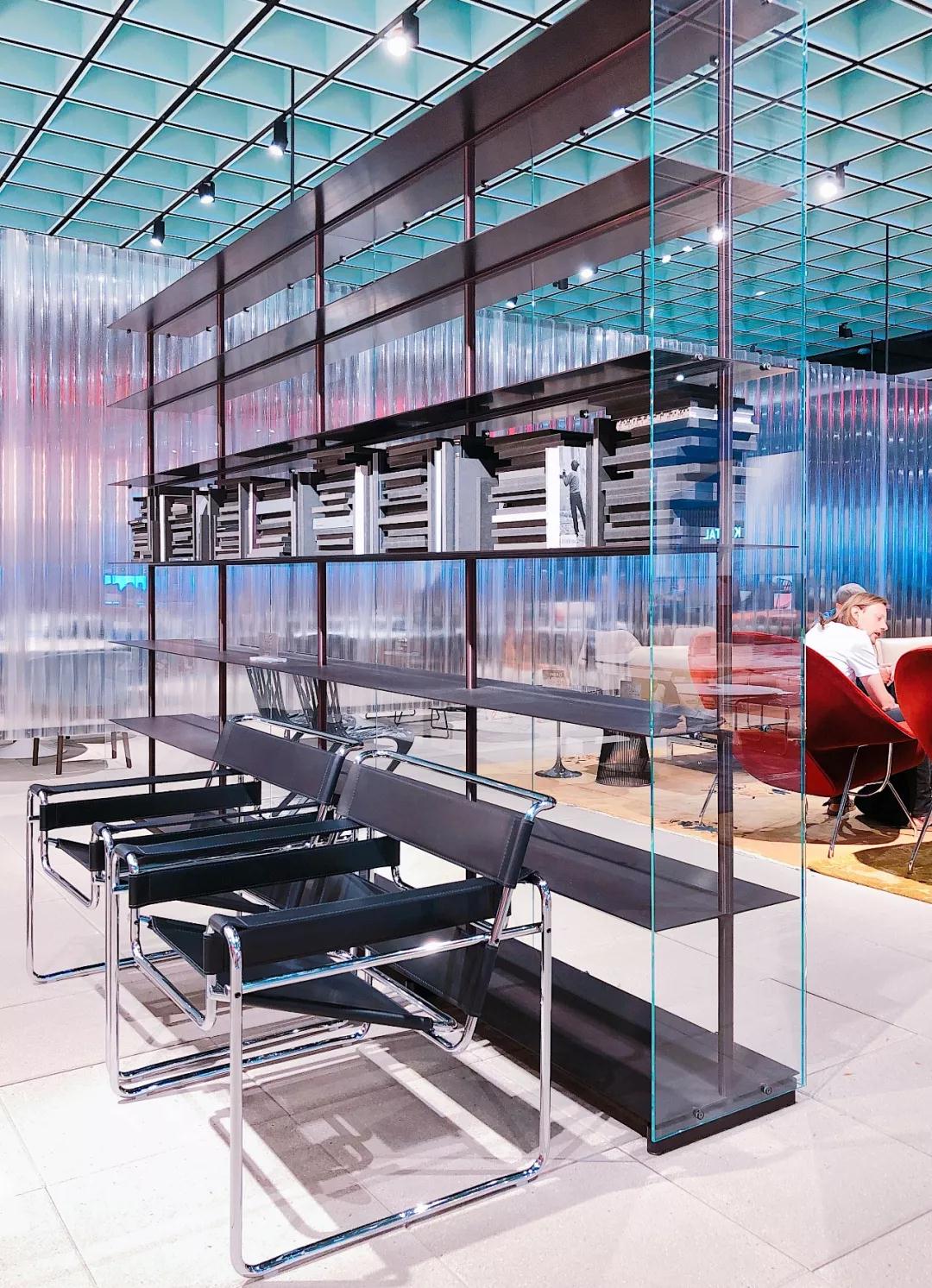 KNOLL透明書柜,由Piero Lissoni設計,除去隔板全部都用玻璃包裹著,干凈柔和的仿佛不存在,但在光線的照射下,卻能散發美好的七彩光芒。