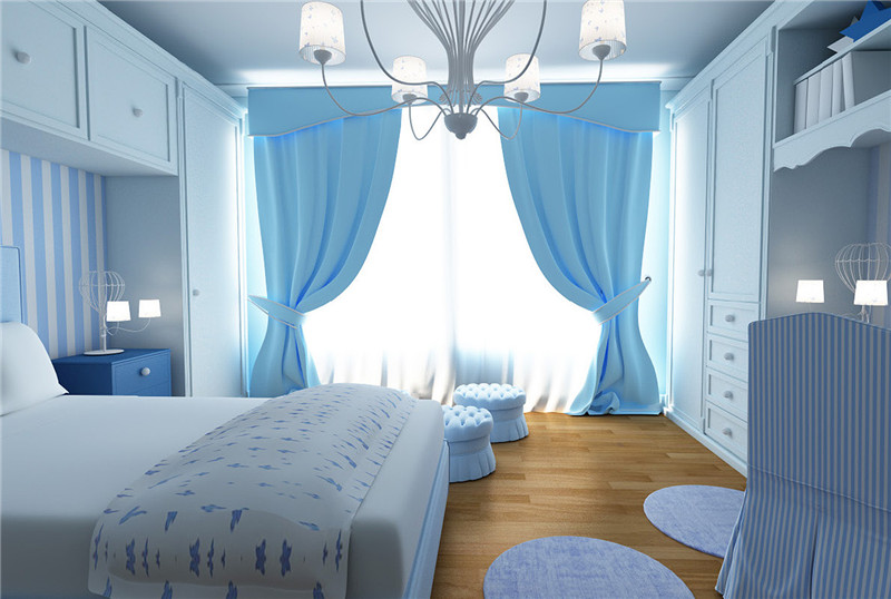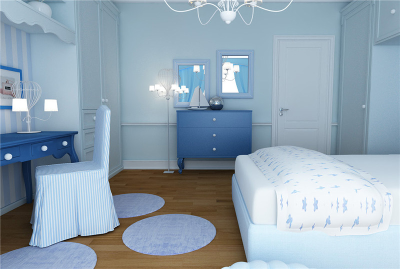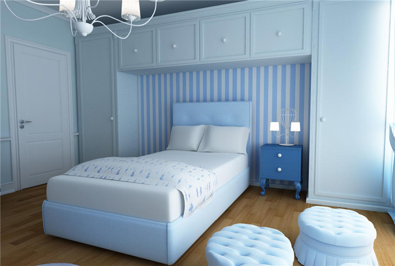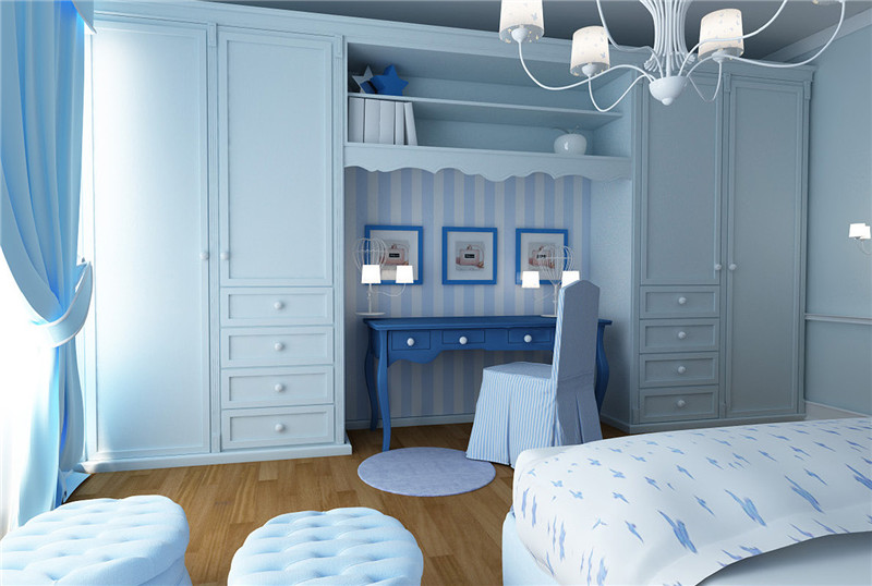 如果說前面兩款擁有了童年的感覺,那么這一款臥室,絕對能把你寵成童話中的小公主,粉藍粉藍的調調,將女孩子喜歡的所有物件都涵蓋了進去。