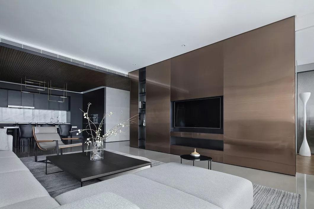 它以簡約內斂的語言,調和高級灰與溫潤棕,透過開放式設計探討共享與私密的關系,并使其相互作用,創(chuàng)造出一個別具格調的紳士空間。