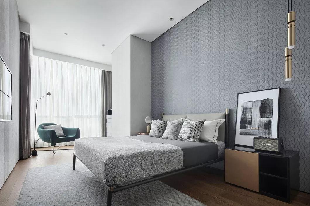 次臥套間延續(xù)灰色基調,在簡潔舒適中營造出安靜愜意的環(huán)境。