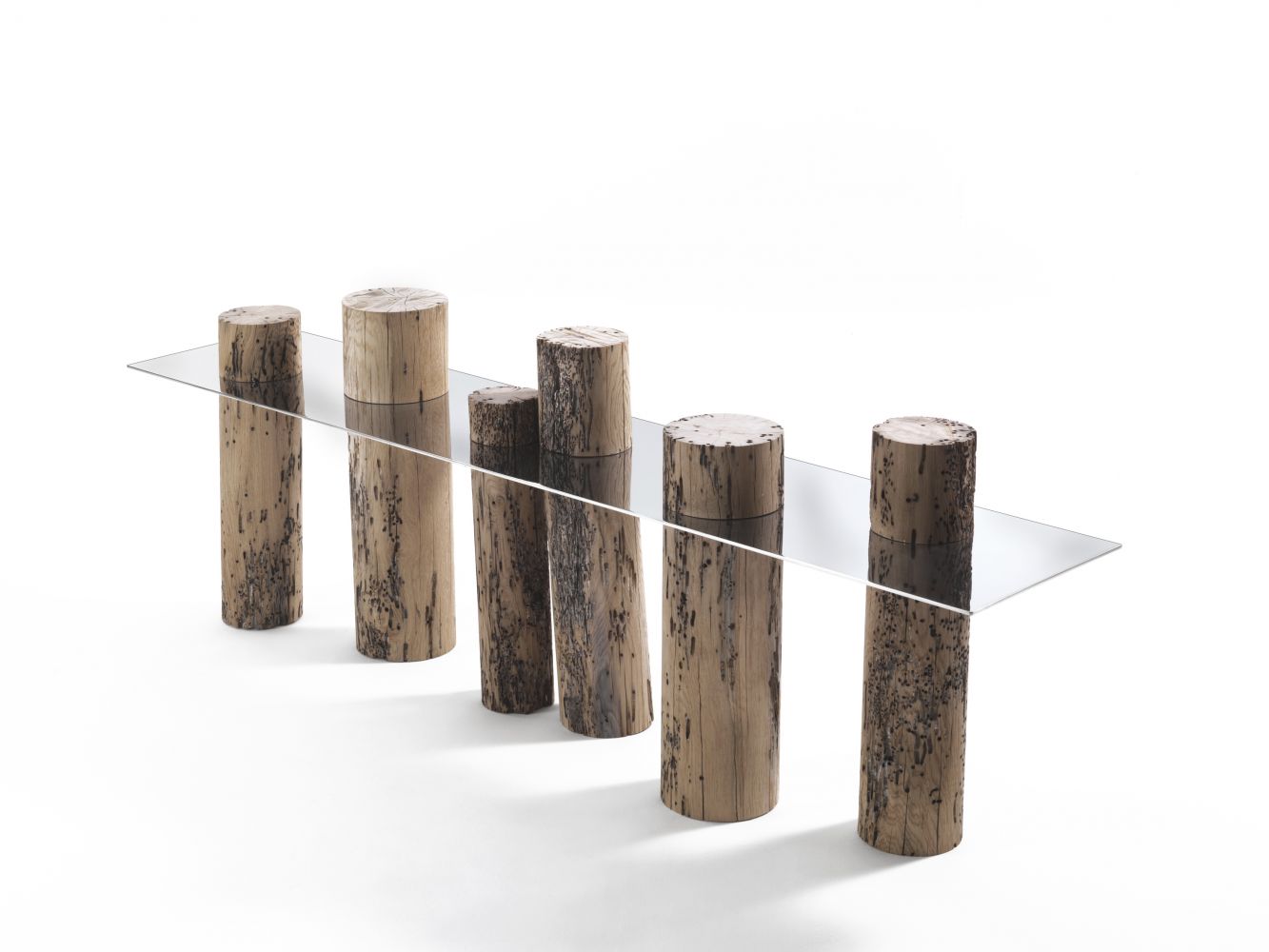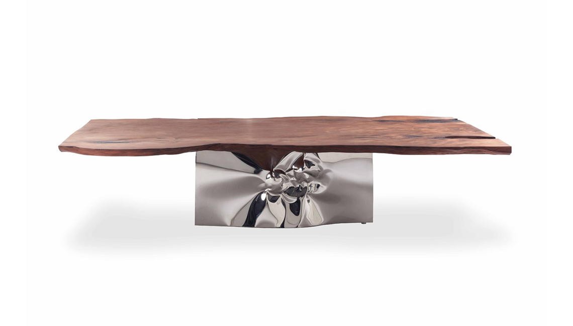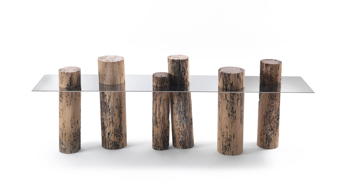 這是Riva1920用威尼斯橡木制作的具有標志性的餐桌,它模仿木材一半淹沒于水中一半呈現(xiàn)在水面的景象,利用原始木料,設計了這一款與眾不同的餐桌。