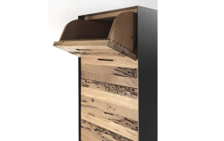 Riva1920作為高端手工原木家具的制造商,一直對原木家具保持專注和執(zhí)著,除了選擇FSC(世界森林認證組織)認證的胡桃木、橡木外,也曾不惜耗費巨資遠赴新西蘭北方開采侏羅紀時期封存地層地下的萬年原木,并慧眼獨具的采用威尼斯獨有橡木船樁作為原材料進行設計創(chuàng)作。