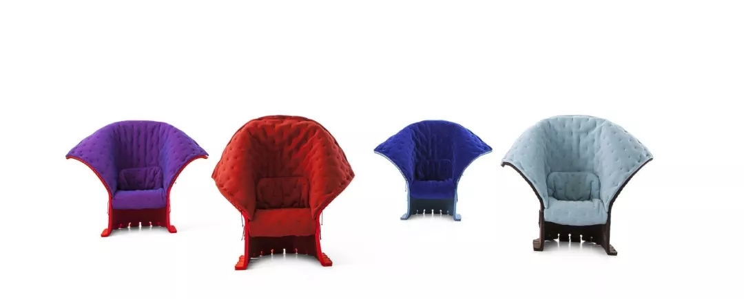 Antibodi是出自Cassina現任設計總監Patricia Urquiola之手,突破了椅子常規形狀,縫制的三維幾何狀的花瓣似盛開,似閉合,用三角形基底的圖形結構布局,就像一場花卉大爆炸一樣奇妙的象征。