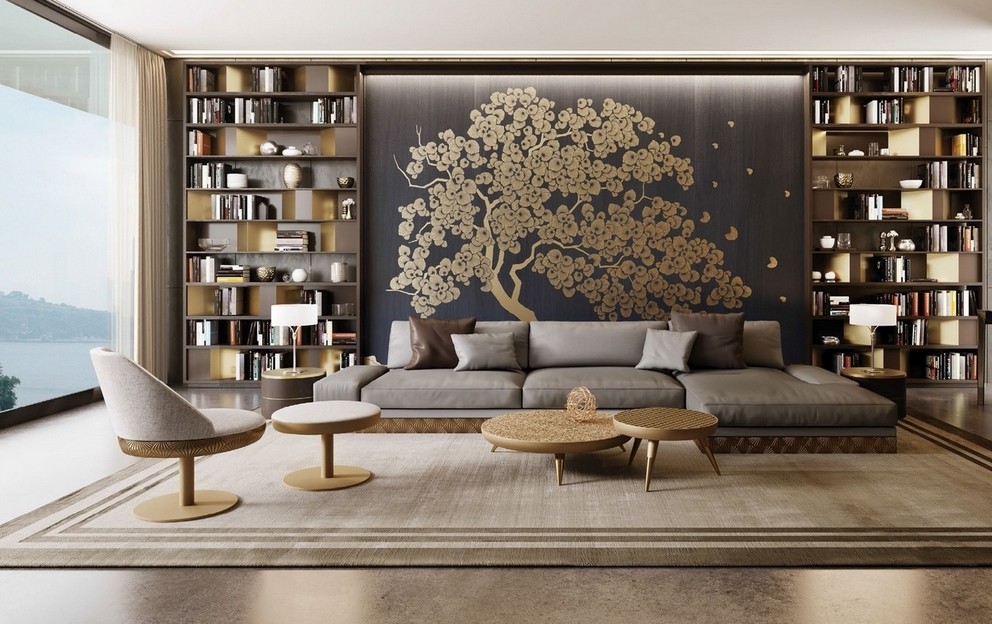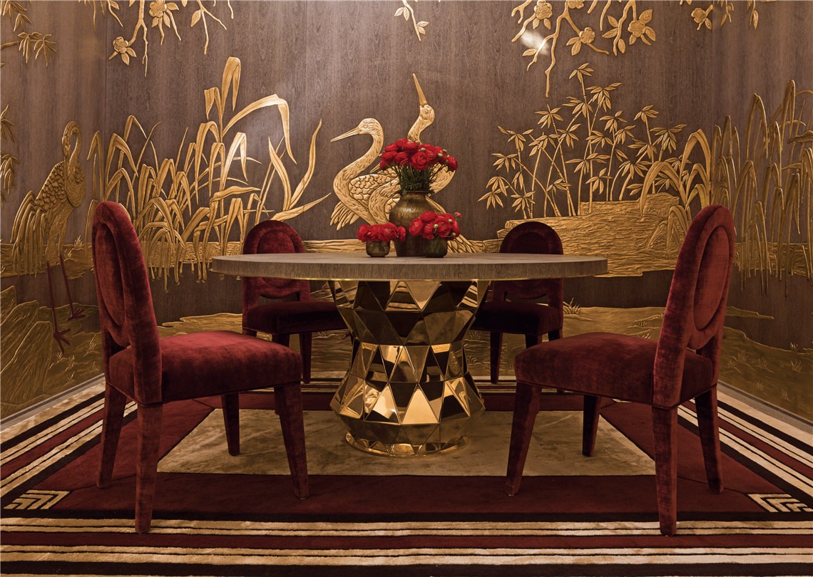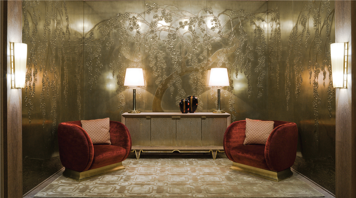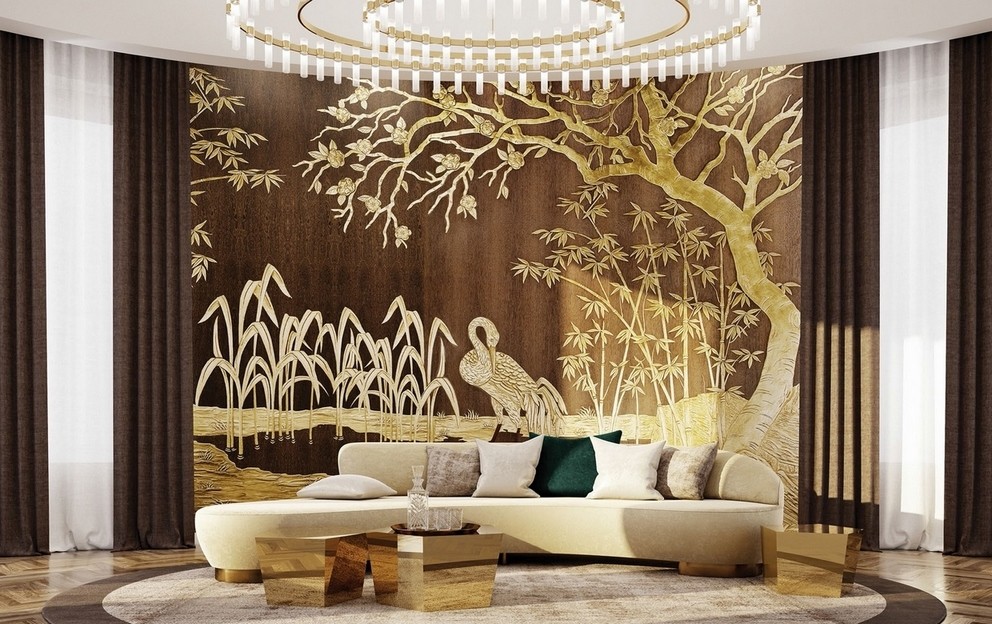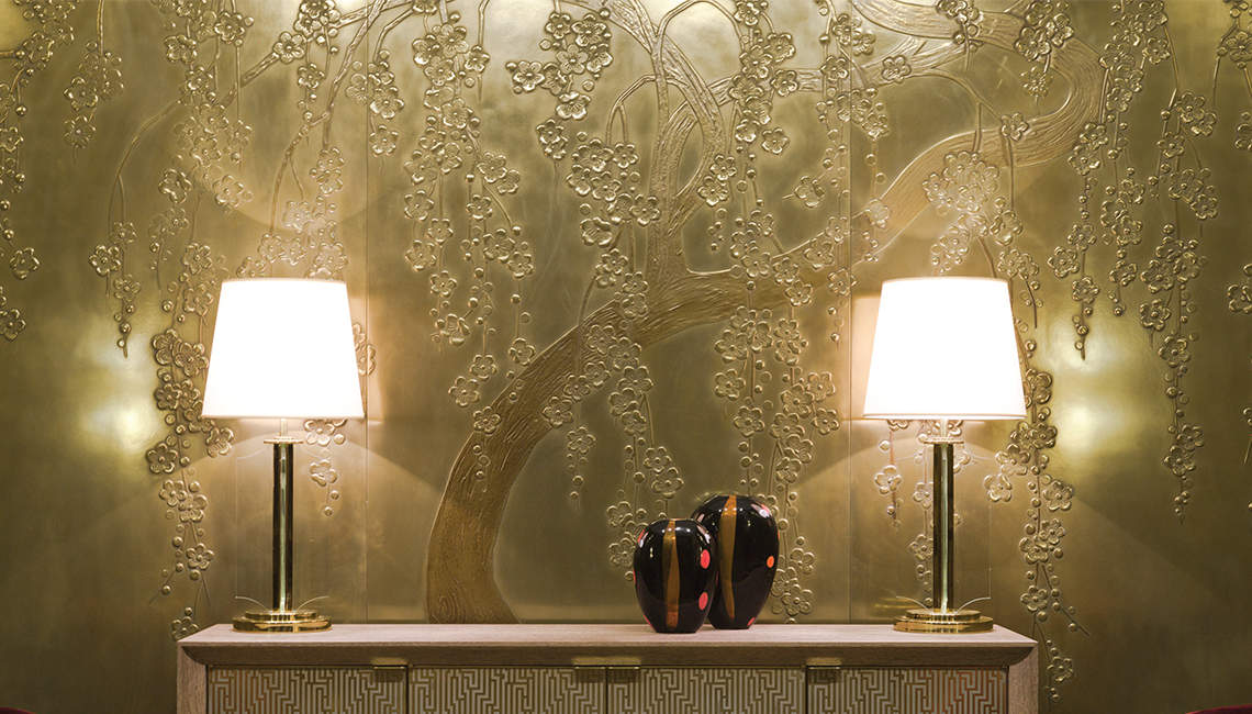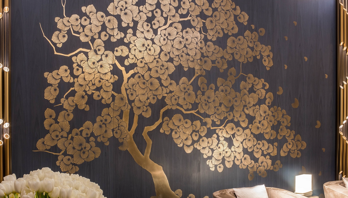 今天要介紹的品牌是由意大利藝術家Lucio Doro于1977年在意大利北部的Meda創建的裝飾美學品牌ALCHYMIA(阿基米亞),創始人Lucio Doro研究50年,將煉金術和東方元素:仙鶴、祥云、梅花、翠竹等,融合在一起,呈現出令人震驚的藝術裝飾墻,仿佛穿越到了古代宮廷,金碧輝煌,美輪美奐。