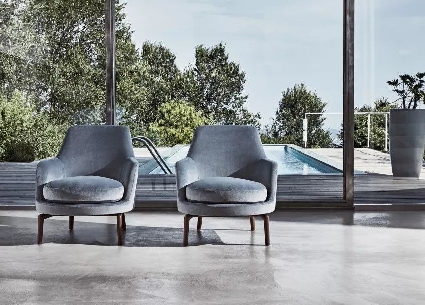 Sveva扶手椅復雜的輪廓標明了其與眾不同的個性,同時又有一種令人無法抗拒的魅力,形狀優(yōu)美的外觀由剛性結構聚氨酯制成,用馬鞍皮包裹,鵝絨填充作為和座椅靠背墊讓坐感更加舒適。
