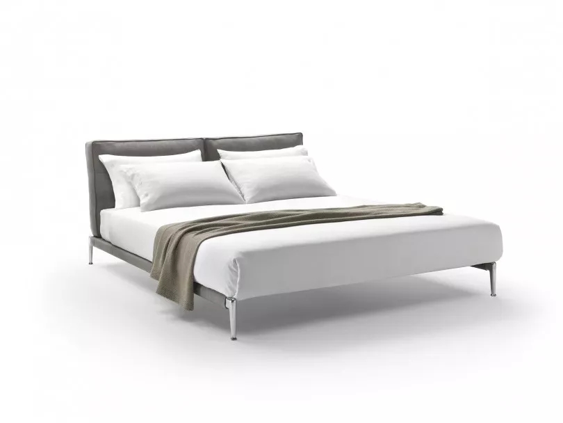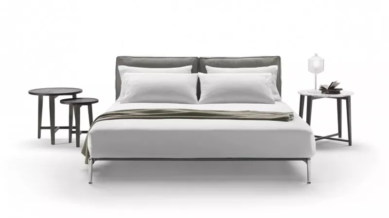 這是由2017年4月在移動沙龍上推出的ADDA沙發(fā)所拓展出來的同名床,大比例的軟墊床頭板與光華的金屬底座形成了巧妙的對比,增加了獨特的設計個性,床頭板由兩個鵝絨填充的墊子組成,十分舒適。
