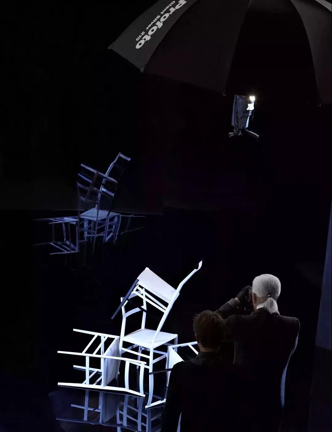在2013年卡爾與意大利經典家具品牌CASSINA的跨界合作上,為其拍攝了一組“家具大片”,以此表達對自己鐘愛的家具的喜愛,以及對設計大師的致敬。