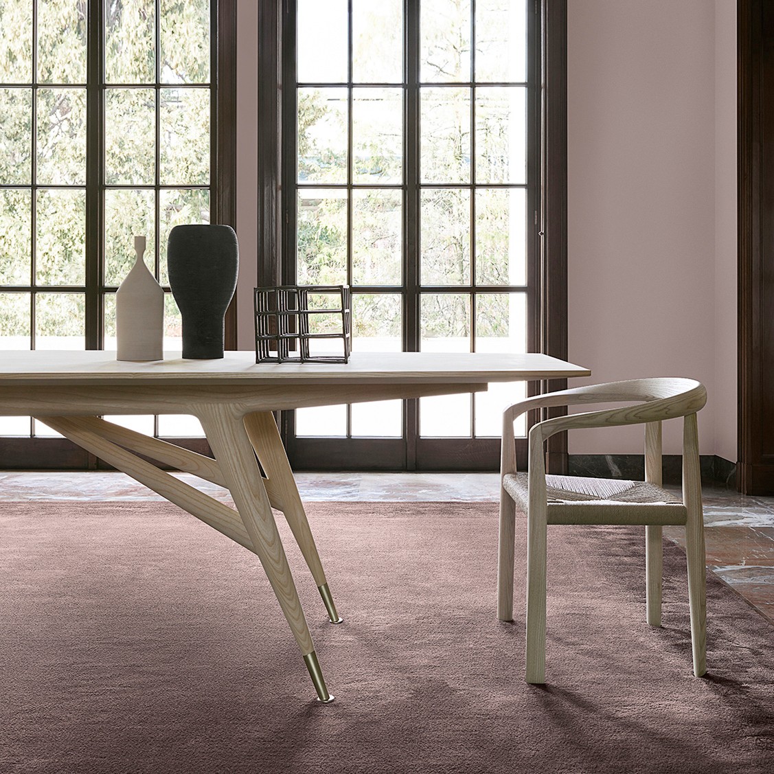 淺色或深色實木簡單的線條描繪,桌腳用黃銅包裹更具優雅。