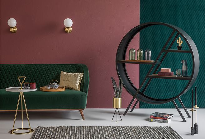 墻面大面積使用蜜桃色是一種很大膽的選擇,但蜜桃色能夠完全展現你對浪漫生活的態度。計師Beyza用蜜桃色拼接成背景墻,利用色彩變換,展現空間的活力與魅力。