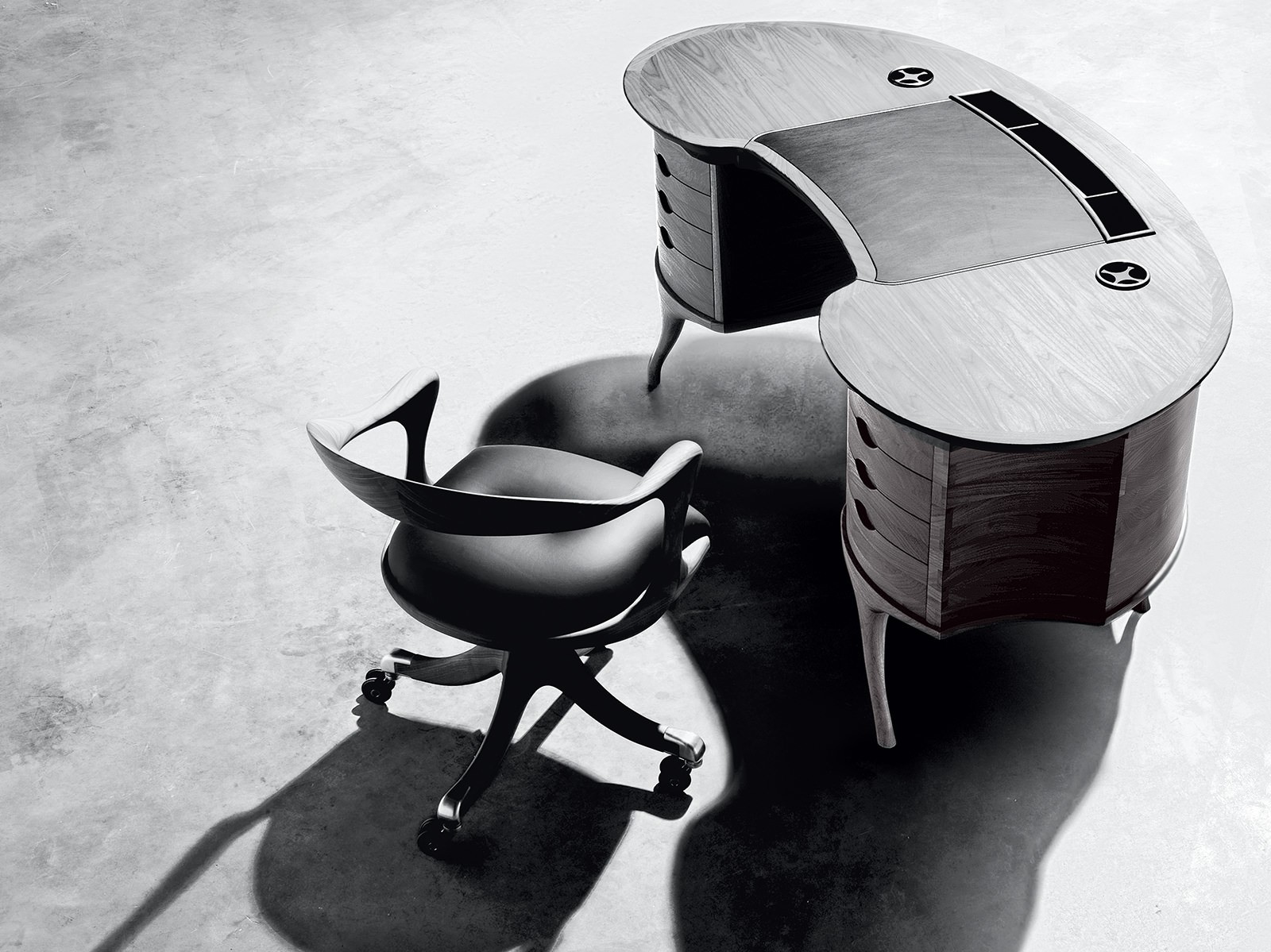 Lazzeroni為GIORGETTI設計的家具在富有新中式風格的同時簡化了線條和結構。造型優雅而內斂,細節精致。Tycoon書桌還在直角線和靈活性上做出了創新,書桌兩邊設有帶抽屜的側柜,頂部配置多個插座,中央滑動抽屜,里面有隔間,多方面的滿足了使用者的需求。