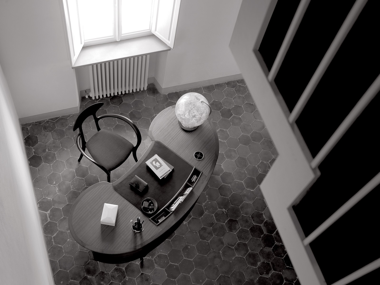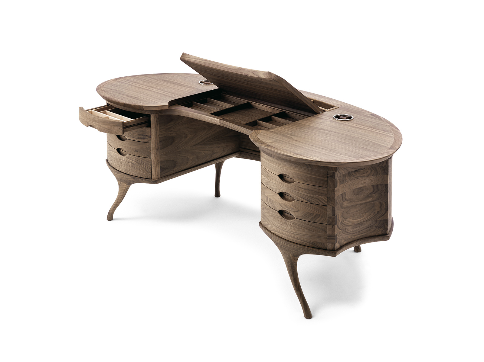 Lazzeroni設計的豌豆桌是Ceccotti Collezioni最有代表性的作品,它完全傳遞出了品牌與眾不同的核心力。一件桌子由346件各自不同的實木部件組成,全部的部件都使用榫卯連接,沒有一顆釘子。它對手工藝的要求極高,一年的產量不會高于六十件。線條優美兼具分類收納功能,是手工之作的典范。