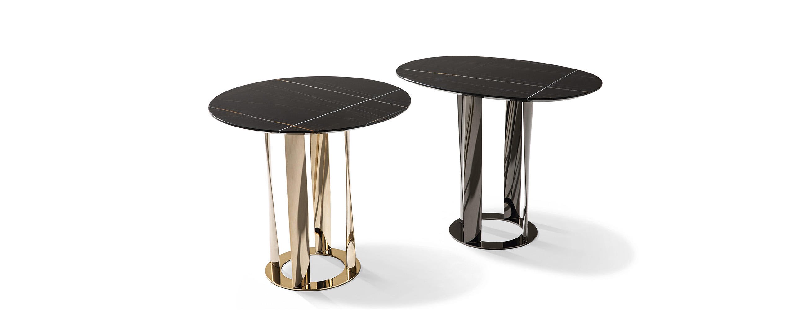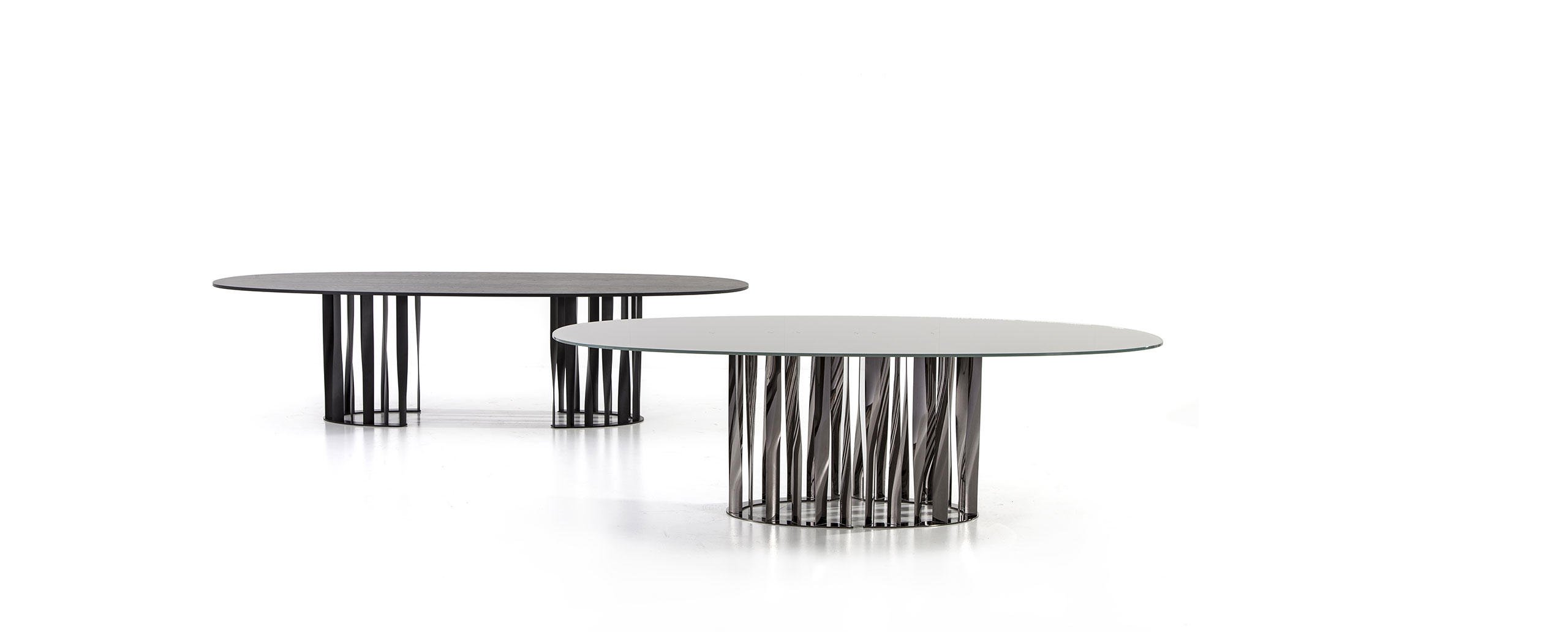 Boboli系列的特點(diǎn)就是有序的幾何線條。這個(gè)系列通過底部細(xì)長扭曲的立柱來穩(wěn)定桌面,既有承重功能又具有裝飾性。這個(gè)紋路是向經(jīng)典的意大利花園致敬,這種立柱的設(shè)計(jì)使外觀具有很強(qiáng)的雕塑感。