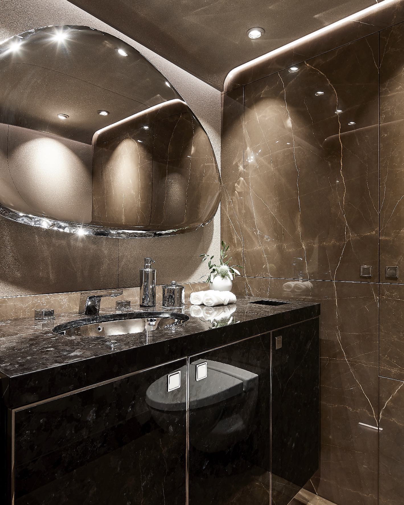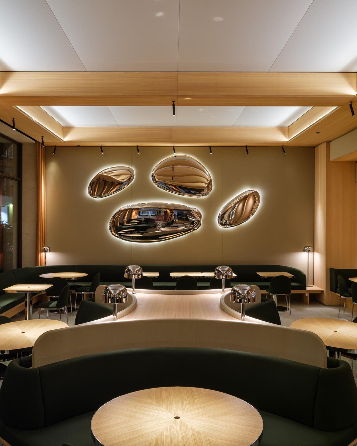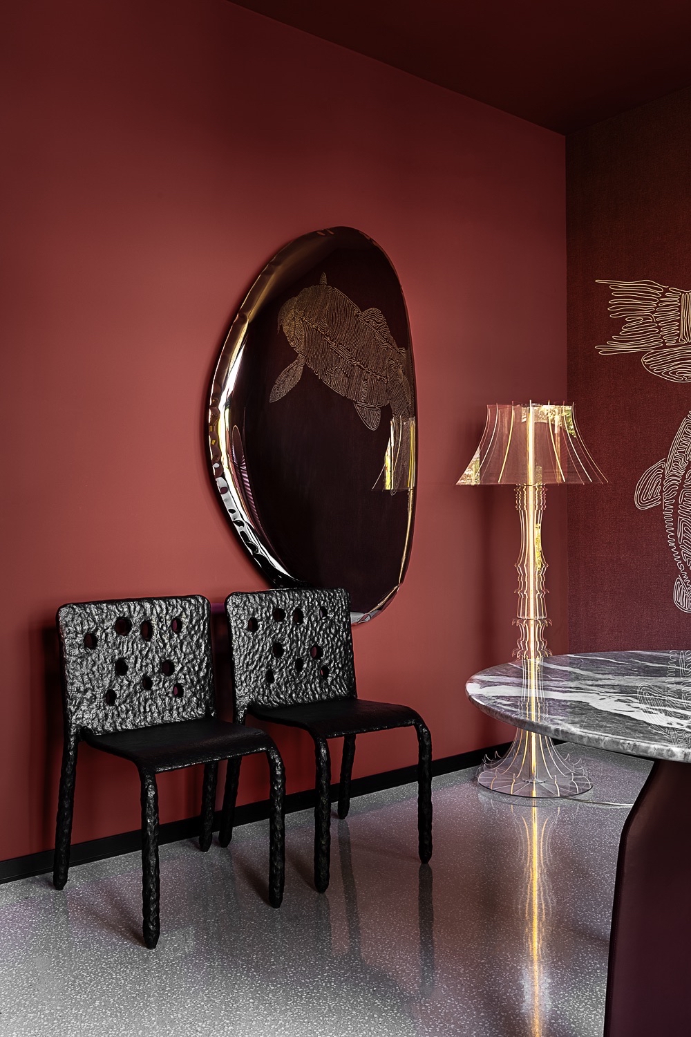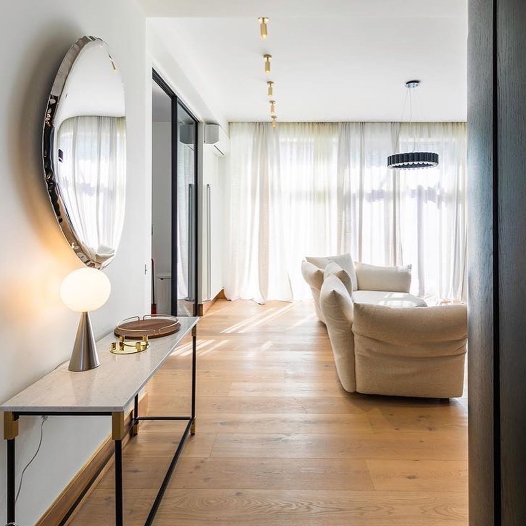 TAFLA O is a series of bionic mirrors of organic shapes inspired by natural shapes of liquid drops. Mirrors from the TAFLA collection are made of stainless steel polished to a high gloss and come in seven different sizes. They can be arranged in an artistic personalized composition or exposed on a wall as a single sculpture-like mirror. They will fit contemporary private spaces, as well as restaurants, bars and hotel rooms. You can enjoy the charm of the classic Inox finish or a colour selected from the available palette. The TAFLA O mirror looks mesmerizing as a single object, but also in layouts that make up constellations of them.